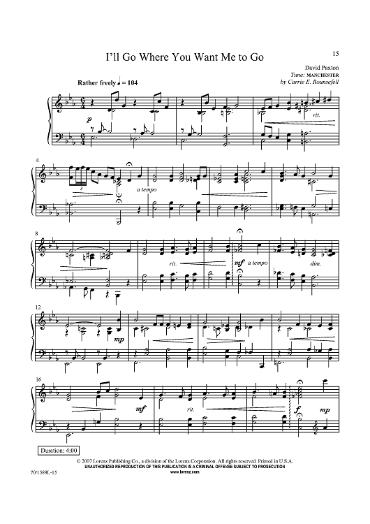 Digital Sheet Music for I'll Go Where You Want Me To Go by David Paxton, Carrie E. Rounsefell scored for Piano Solo; id:433562