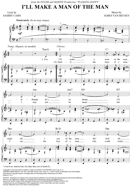 Digital Sheet Music for I'll Make a Man of the Man by Sammy Cahn, Jimmy Van Heusen scored for Piano/Vocal/Chords; id:355330