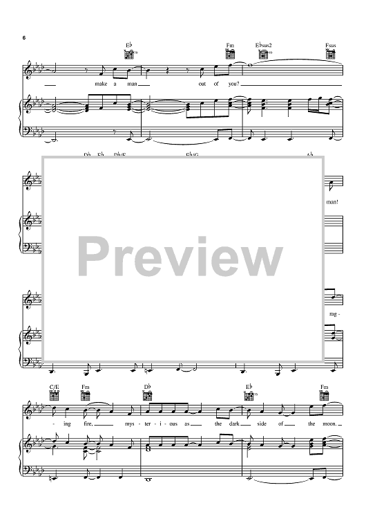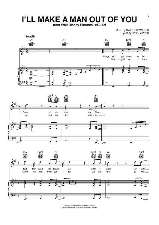 Digital Sheet Music for I'll Make A Man Out Of You by David Zippel, Donny Osmond, Matthew Wilder scored for Piano/Vocal/Chords; id:393932