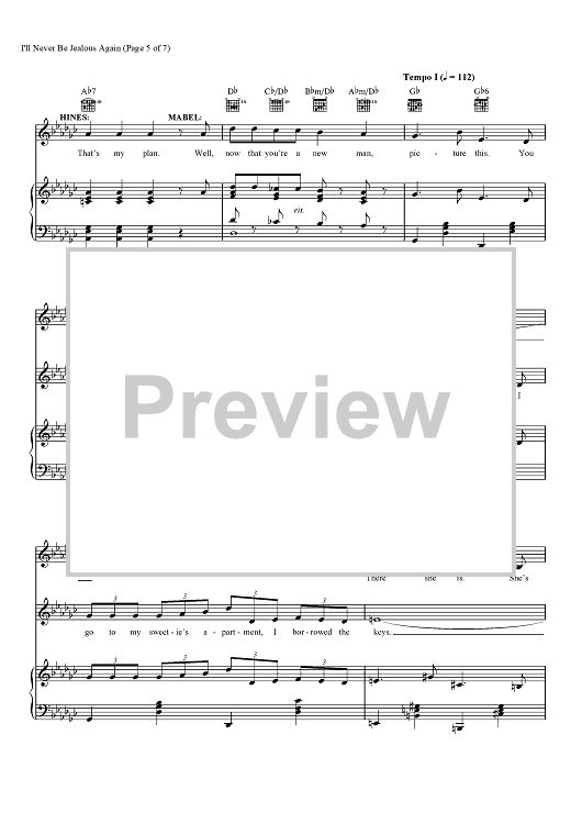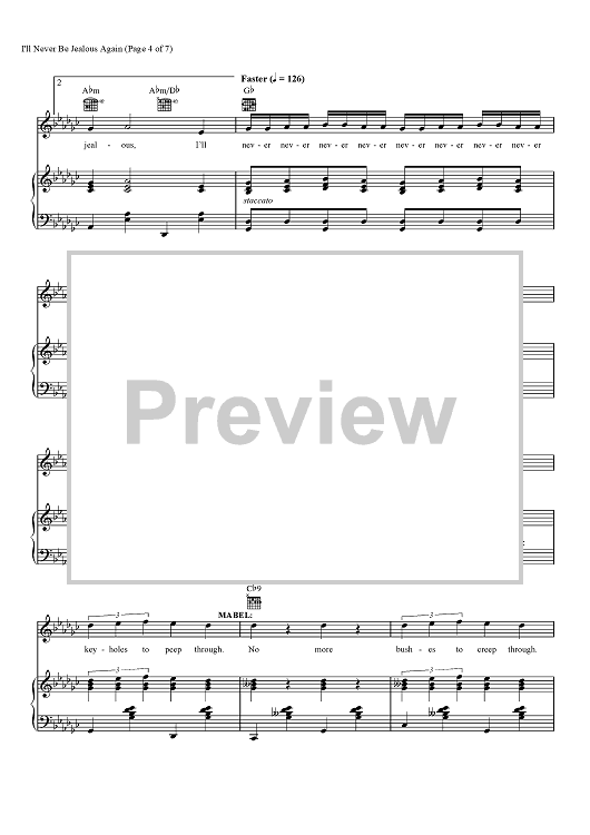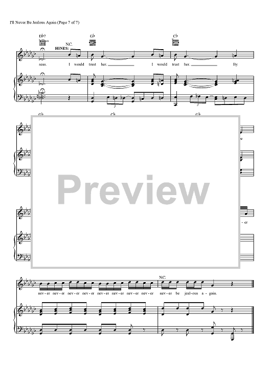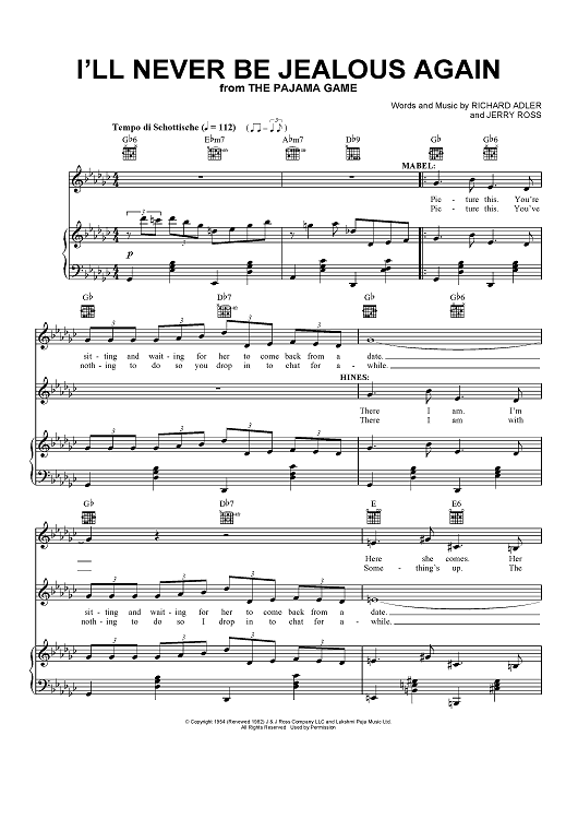 Digital Sheet Music for I'll Never Be Jealous Again by Jerry Ross, Richard Adler scored for Piano/Vocal/Chords; id:465490