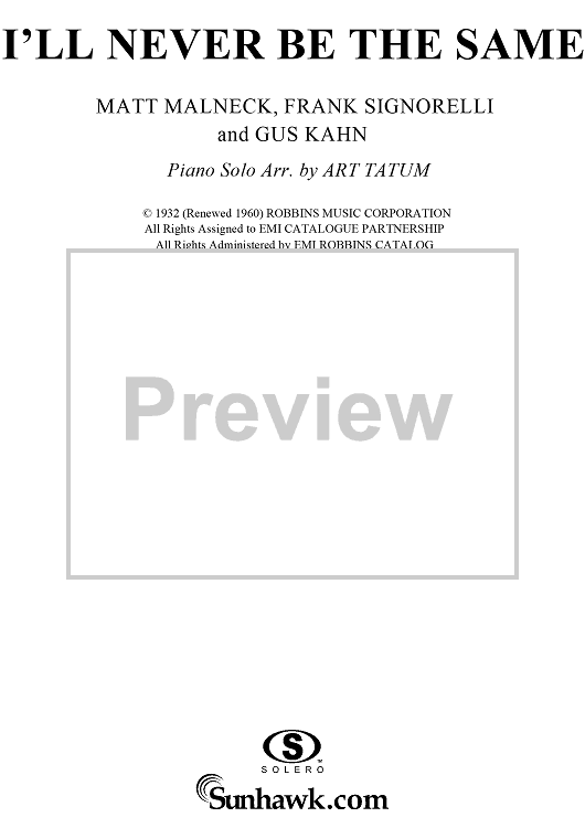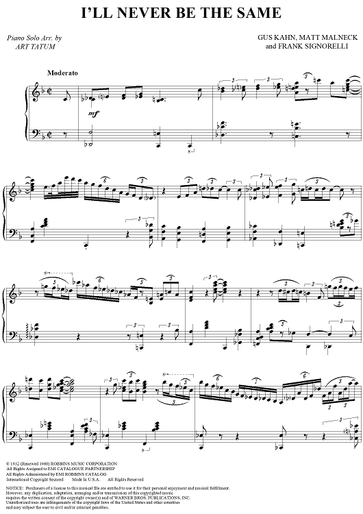 Digital Sheet Music for I'll Never Be the Same by Gus Kahn, Art Tatum, Frank Signorelli, Matt Malneck scored for Piano Solo; id:112791