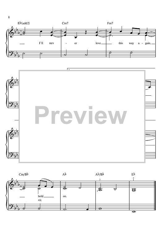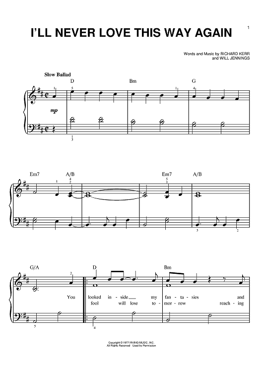 Digital Sheet Music for I'll Never Love This Way Again by Will Jennings, Dionne Warwick, Richard Kerr scored for Easy Piano; id:367418