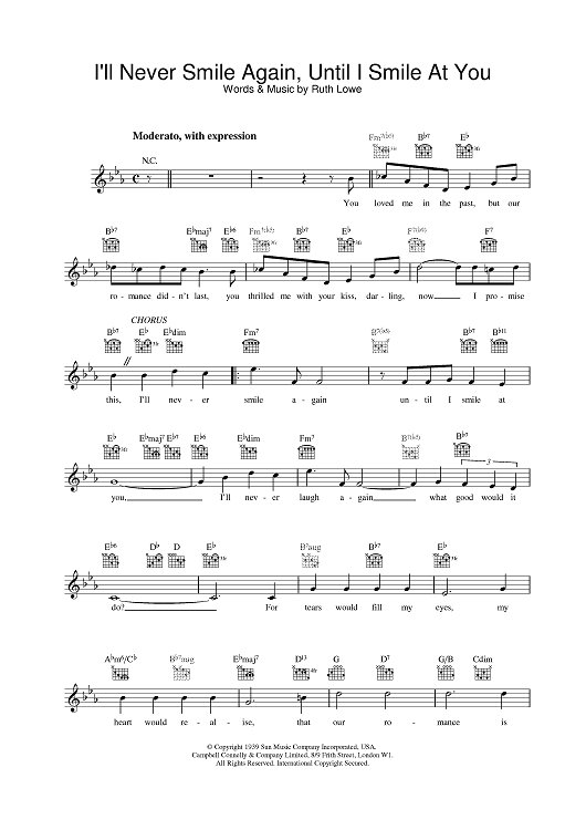 Digital Sheet Music for I'll Never Smile Again, Until I Smile At You by Frank Sinatra scored for Lead Sheet; id:378831
