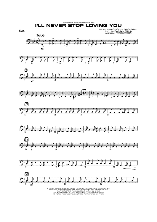 "I'll Never Stop Loving You - Bass" Sheet Music by Nicholas Brodszky