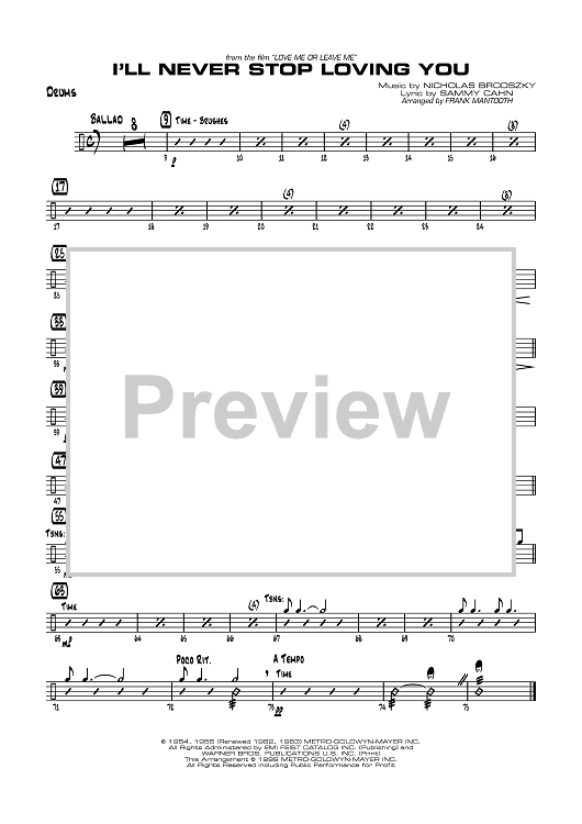 "I'll Never Stop Loving You - Drums" Sheet Music by Nicholas Brodszky