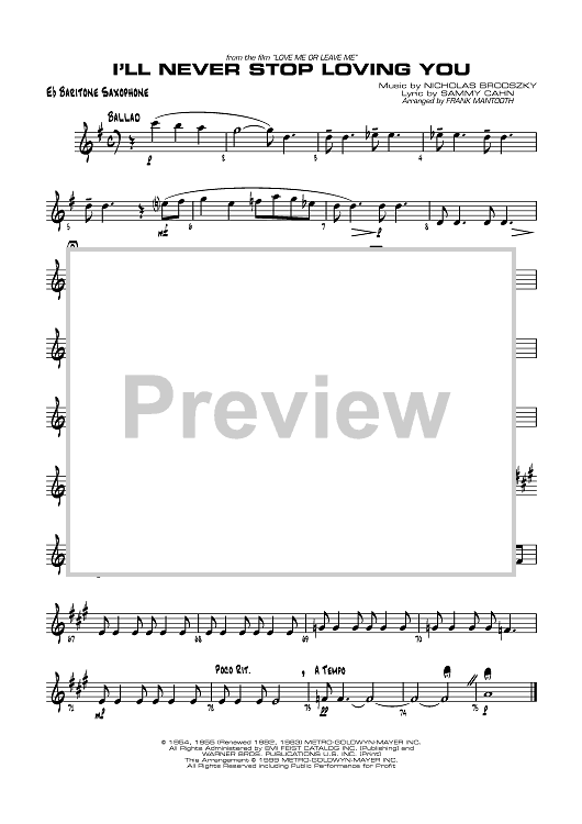 "I'll Never Stop Loving You - E-flat Baritone Saxophone" Sheet Music by Nicholas Brodszky