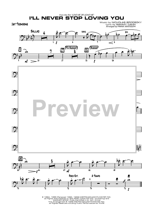 "I'll Never Stop Loving You - Trombone 1" Sheet Music by Nicholas Brodszky