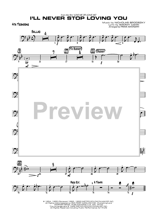 "I'll Never Stop Loving You - Trombone 4" Sheet Music by Nicholas Brodszky