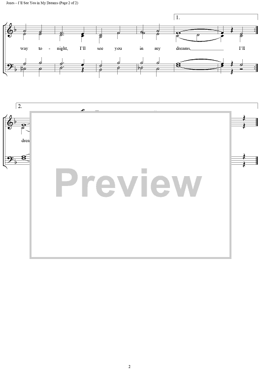 Digital Sheet Music for I'll See You In My Dreams by Gus Kahn, Isham Jones scored for Barbershop Quartet; id:116188