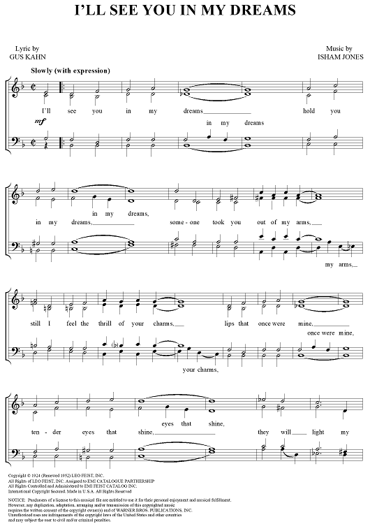 "I'll See You In My Dreams" Sheet Music by Isham Jones