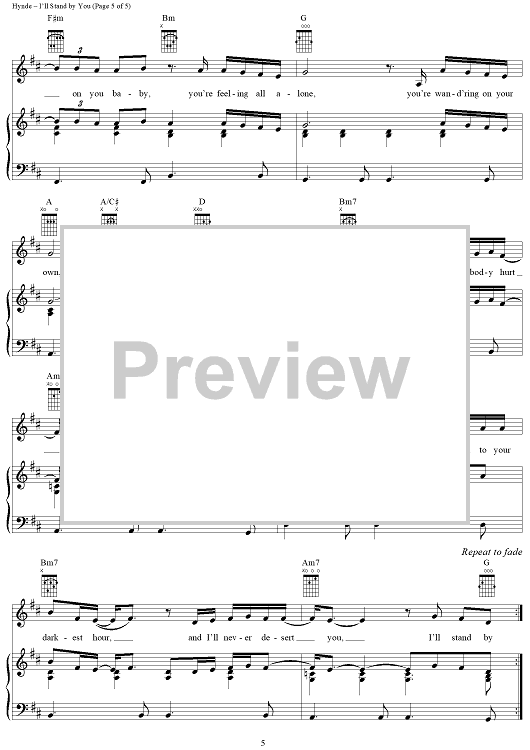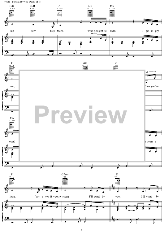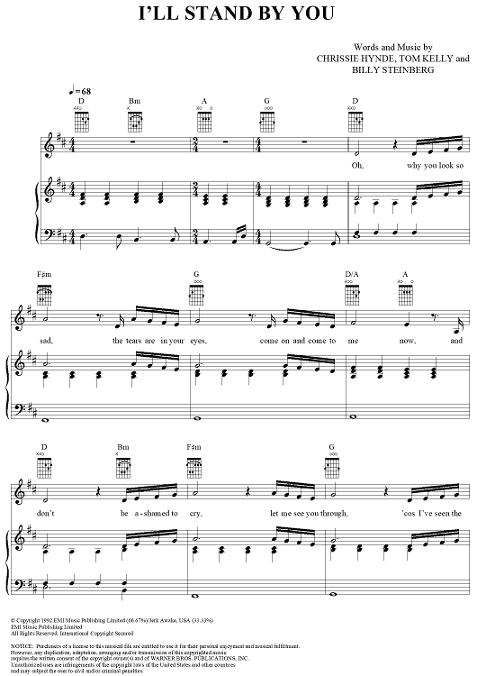 Digital Sheet Music for I'll Stand by You by Billy Steinberg, Tom Kelly, The Pretenders, Chrissy Hynde, Carrie Underwood scored for Piano/Vocal/Chords; id:362609