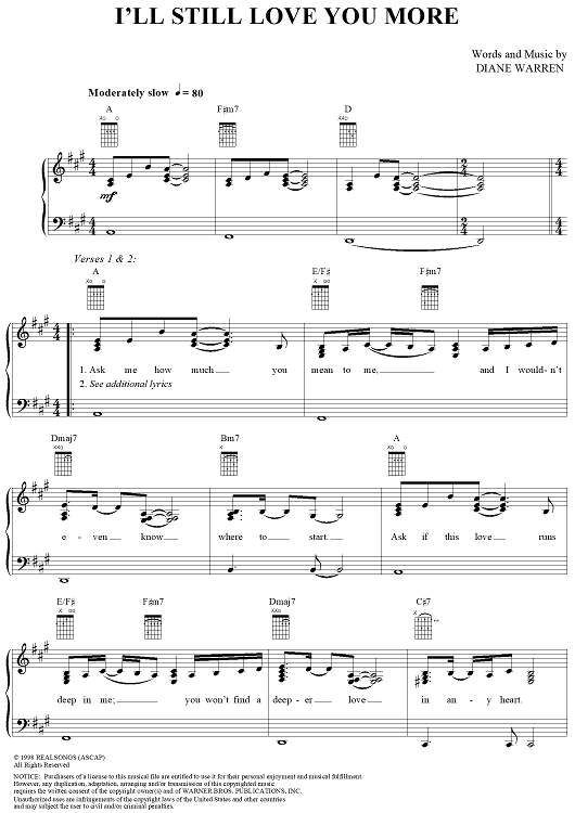 Digital Sheet Music for I'll Still Love You More by Diane Warren, Trisha Yearwood scored for Piano/Vocal/Chords; id:119900