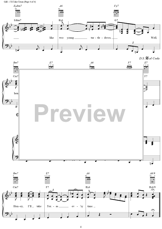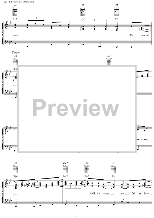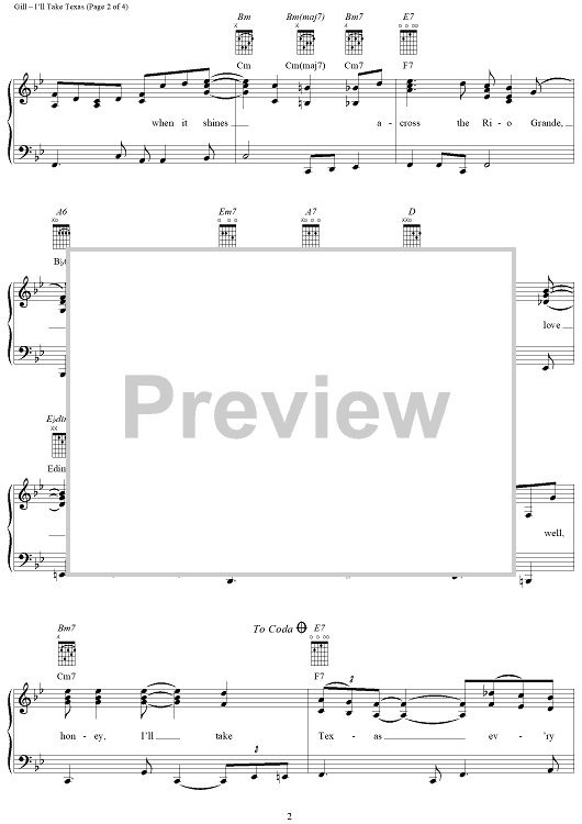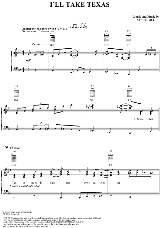 Digital Sheet Music for I'll Take Texas by Vince Gill scored for Piano/Vocal/Chords; id:234671