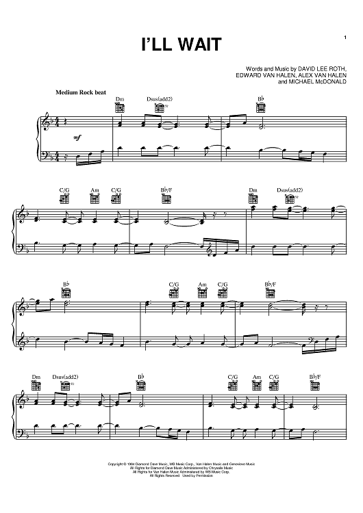 Digital Sheet Music for I'll Wait by Eddie Van Halen, David Lee Roth, Michael McDonald, Alex Van Halen, Van Halen scored for Piano/Vocal/Chords; id:379287