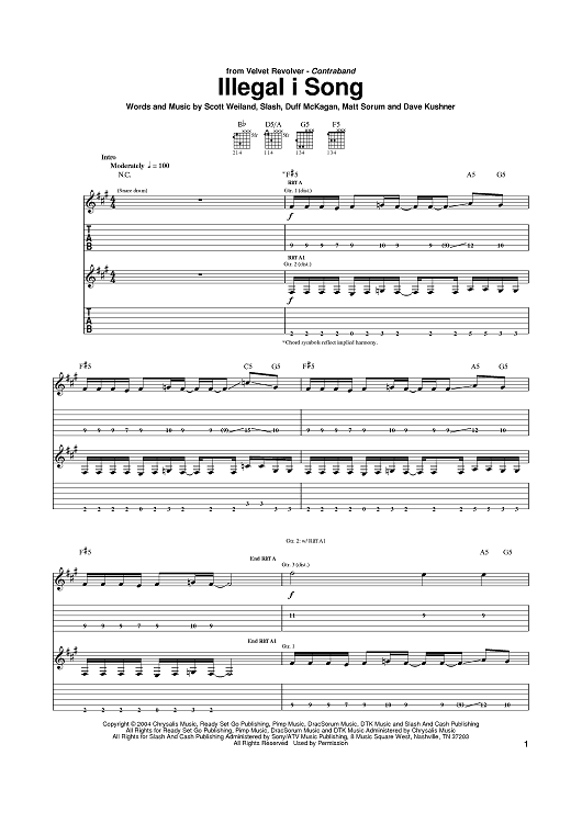 Digital Sheet Music for Illegal I Song by Scott Weiland, Slash, Dave Kushner, Duff McKagan, Matt Sorum, Velvet Revolver scored for Guitar Tab; id:383507