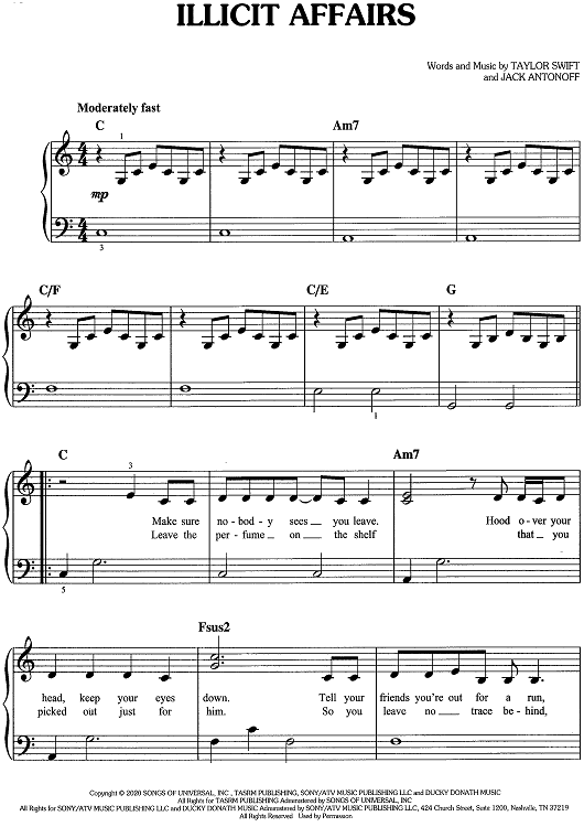 Digital Sheet Music for Illicit Affairs by Taylor Swift, Jack Antonoff scored for Easy Piano/Vocal/Chords; id:468726