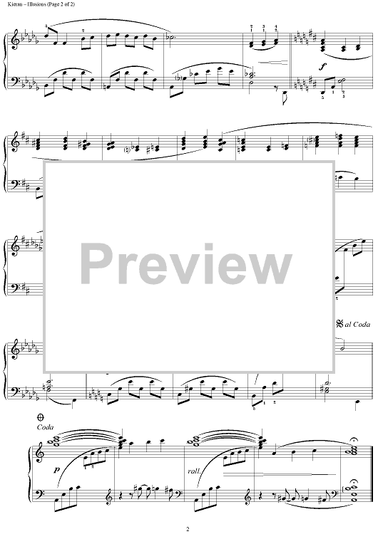 Digital Sheet Music for Illusions by Derek Kieran scored for Piano Solo; id:250057