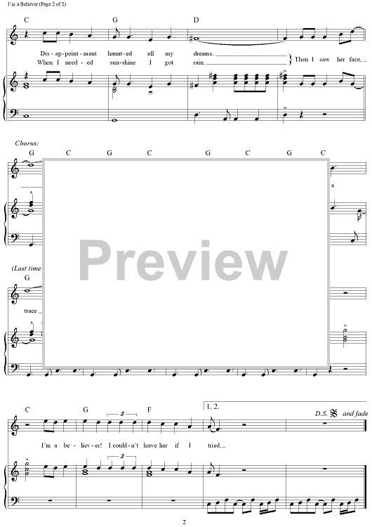 Digital Sheet Music for I'm a Believer by Neil Diamond, The Monkees scored for Piano/Vocal/Chords; id:114084