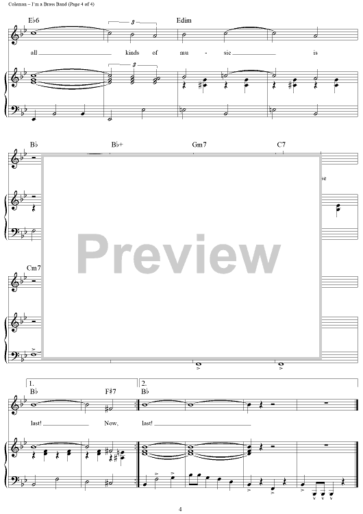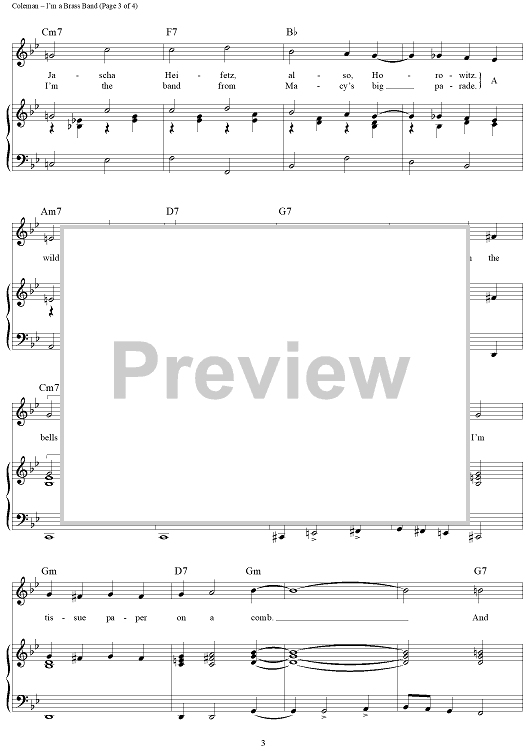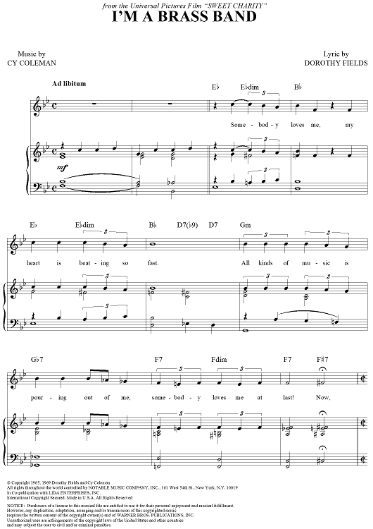 Digital Sheet Music for I'm a Brass Band by Cy Coleman, Dorothy Fields scored for Piano/Vocal/Chords; id:362448
