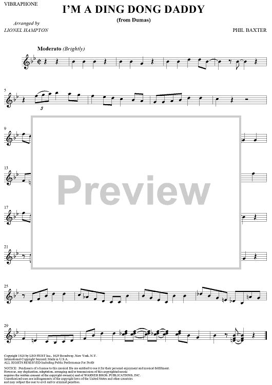 Digital Sheet Music for I'm a Ding Dong Daddy - Vibraphone by , Lionel Hampton, Phil Baxter scored for Vibraphone/Piano; id:313728