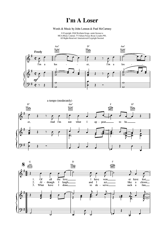 Digital Sheet Music for I'm A Loser by Paul McCartney, The Beatles, John Lennon scored for Piano/Vocal/Chords; id:375551