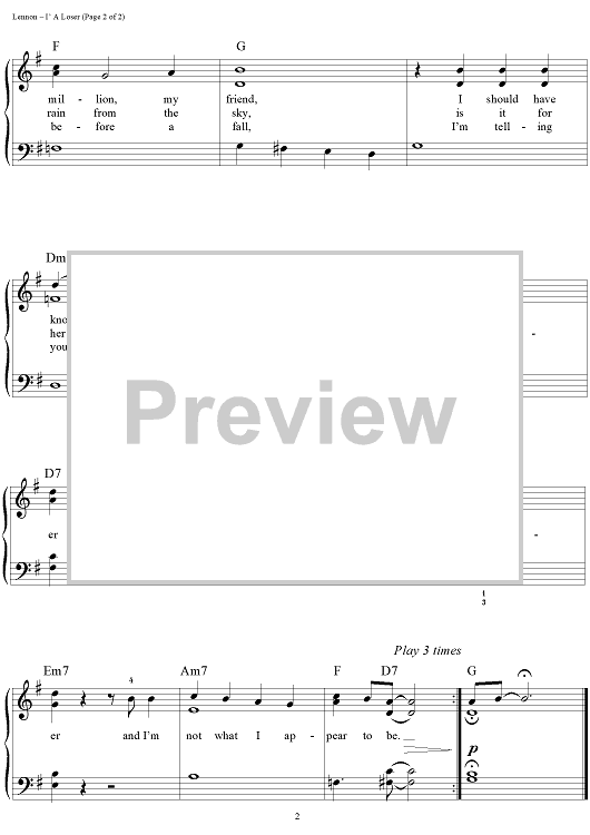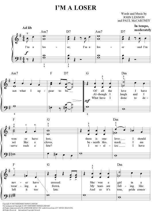 Digital Sheet Music for I'm A Loser by Paul McCartney, The Beatles, John Lennon scored for Easy Piano/Vocal/Chords; id:448658
