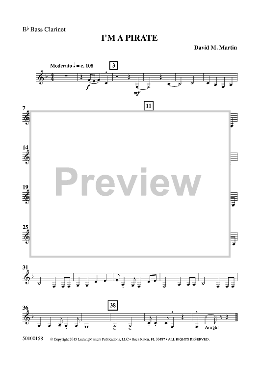 Digital Sheet Music for I'm a Pirate - Bb Bass Clarinet by David Martin scored for Concert Band; id:459186