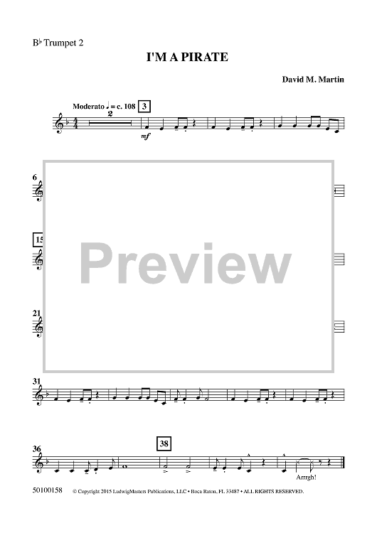 Digital Sheet Music for I'm a Pirate - Bb Trumpet 2 by David Martin scored for Concert Band; id:459191