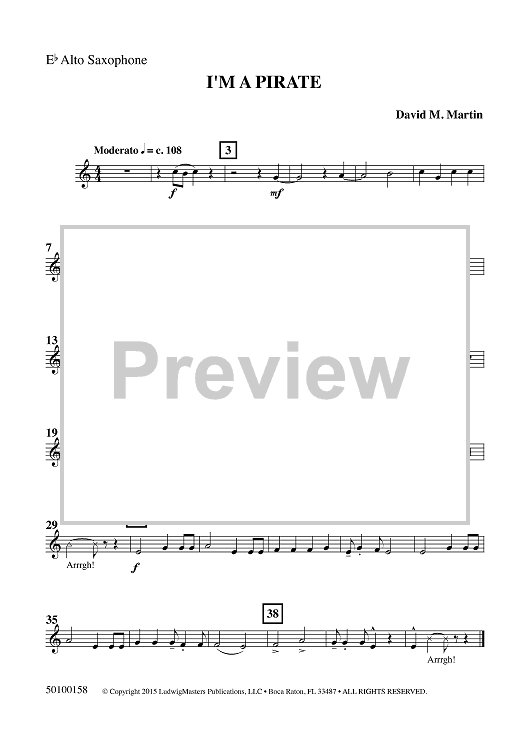 Digital Sheet Music for I'm a Pirate - Eb Alto Sax by David Martin scored for Concert Band; id:459187