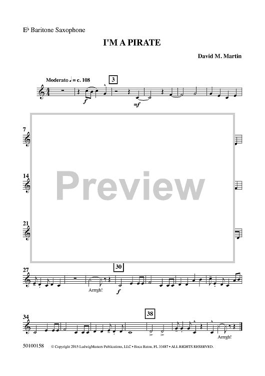 Digital Sheet Music for I'm a Pirate - Eb Baritone Sax by David Martin scored for Concert Band; id:459189