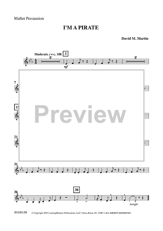 Digital Sheet Music for I'm a Pirate - Mallet Percussion by David Martin scored for Concert Band; id:459201
