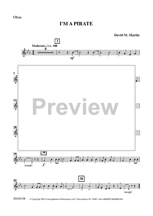 Digital Sheet Music for I'm a Pirate - Oboe by David Martin scored for Concert Band; id:459182