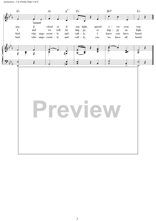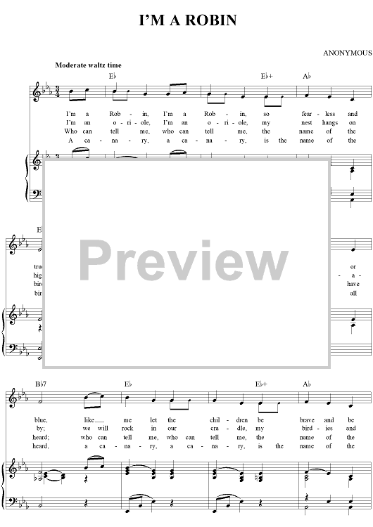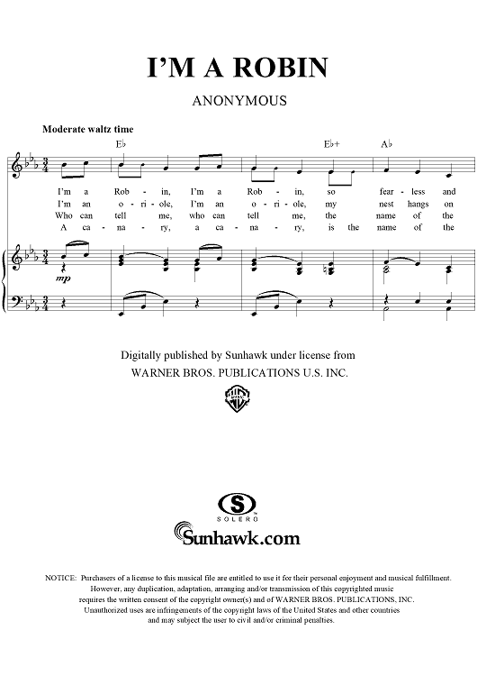 Digital Sheet Music for I'm a Robin by Unknown Writer scored for Piano/Vocal/Chords; id:277247