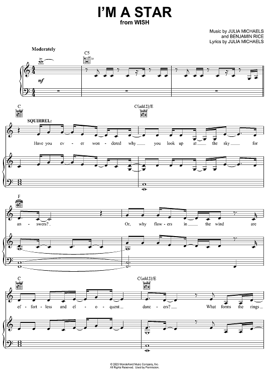 Digital Sheet Music for I'm A Star - from Wish by Julia Michaels, Benjamin Rice scored for Piano/Vocal/Chords; id:501274