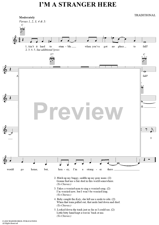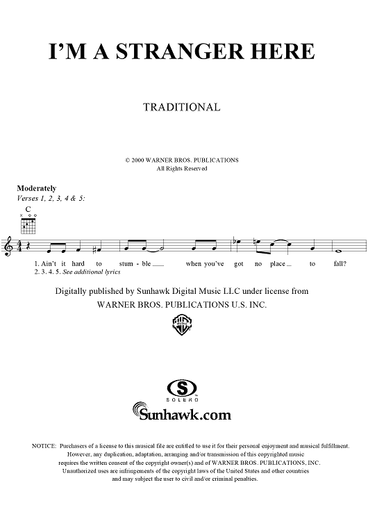 Digital Sheet Music for I'm a Stranger Here by Traditional scored for Lead Sheet; id:292638