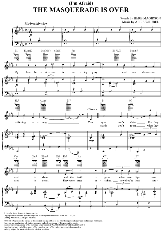 Digital Sheet Music for (I'm Afraid) The Masquerade is Over by Allie Wrubel, Herb Magidson scored for Piano/Vocal/Chords; id:321020