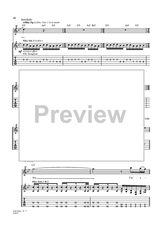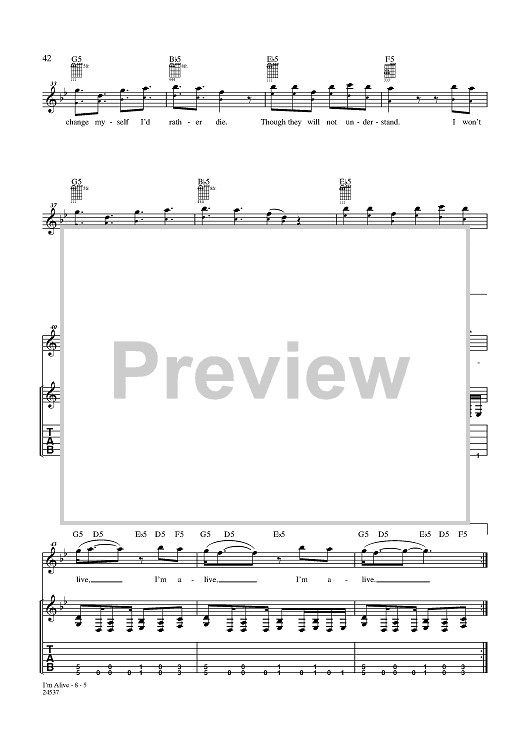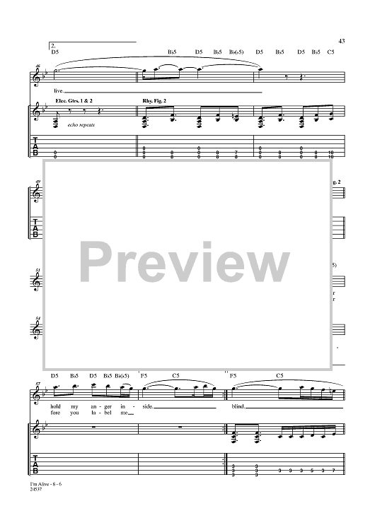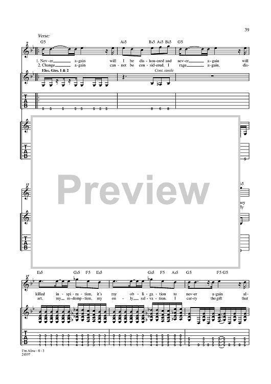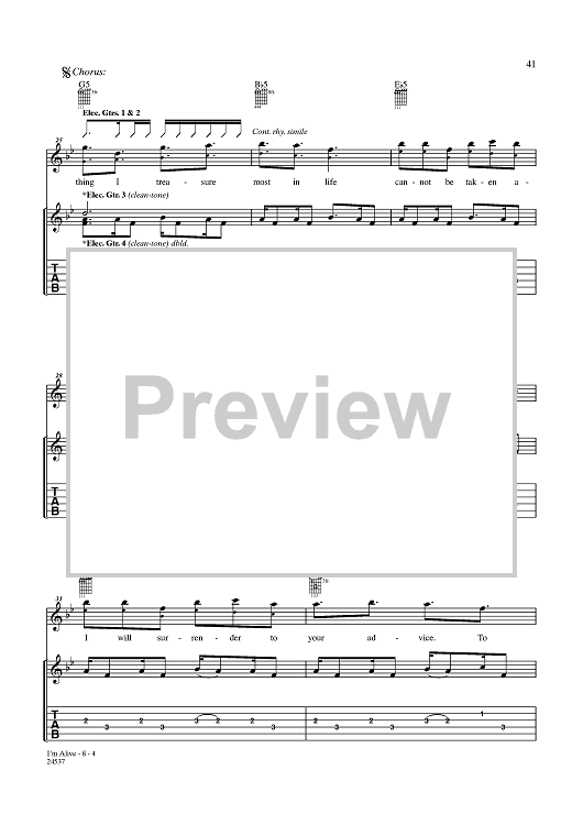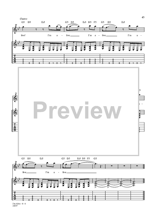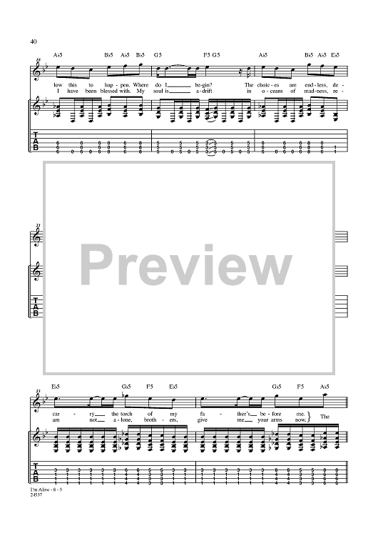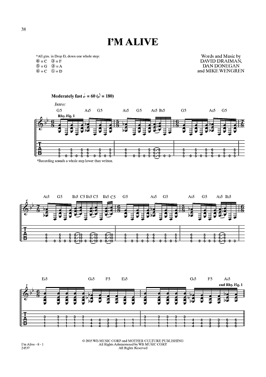 Digital Sheet Music for I'm Alive by Disturbed, Mike Wengren, Dan Donegan, David Draiman scored for Guitar Tab/Vocal; id:357794