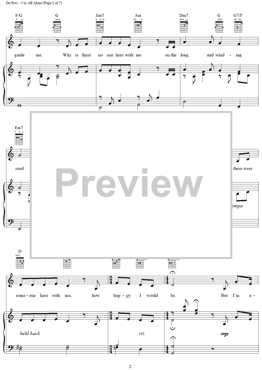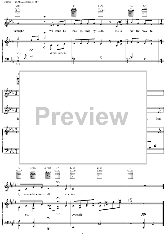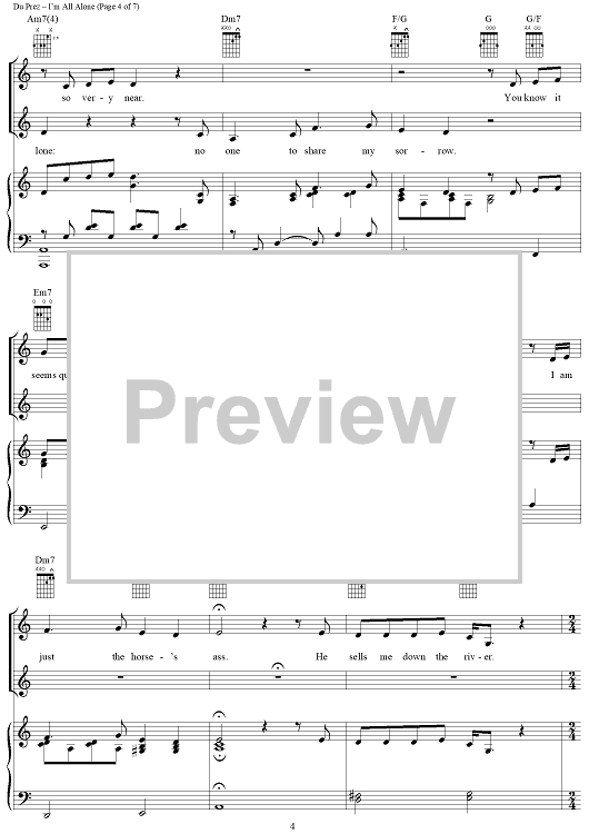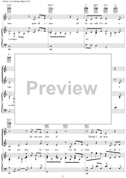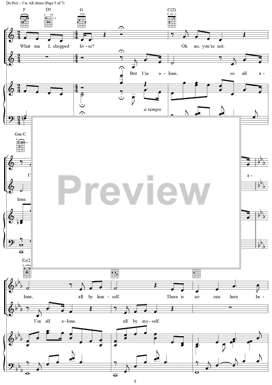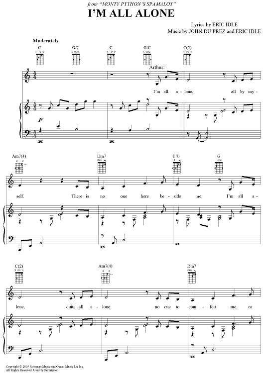 Digital Sheet Music for I'm All Alone by Eric Idle, John Du Prez scored for Piano/Vocal/Chords; id:385970