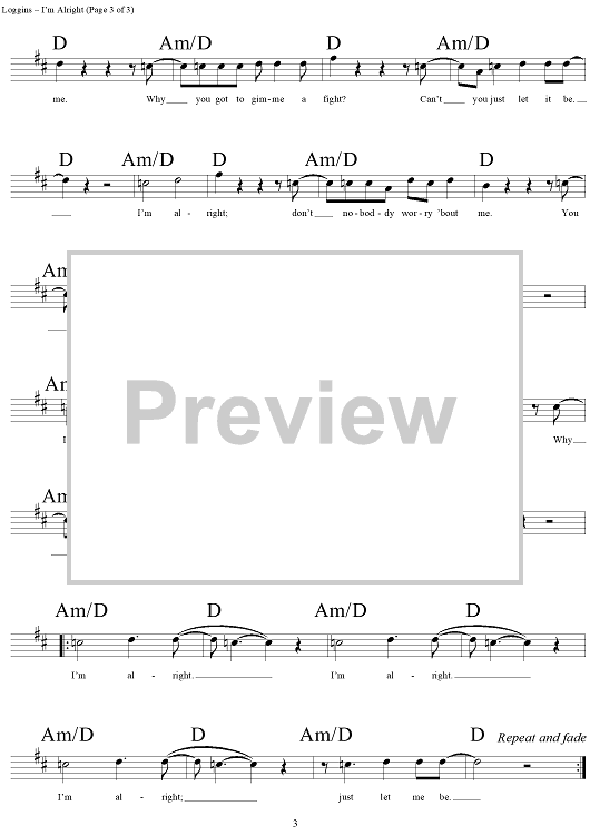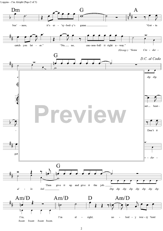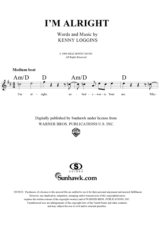 Digital Sheet Music for I'm Alright by Kenny Loggins scored for Lead Sheet; id:251095