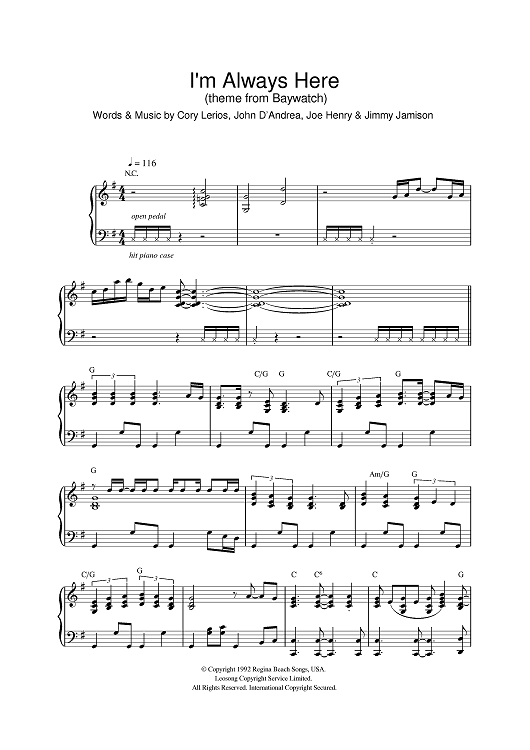 Digital Sheet Music for I'm Always Here by Joe Henry, John D'Andrea, Jimi Jamison, Cory Lerios scored for Piano; id:385333