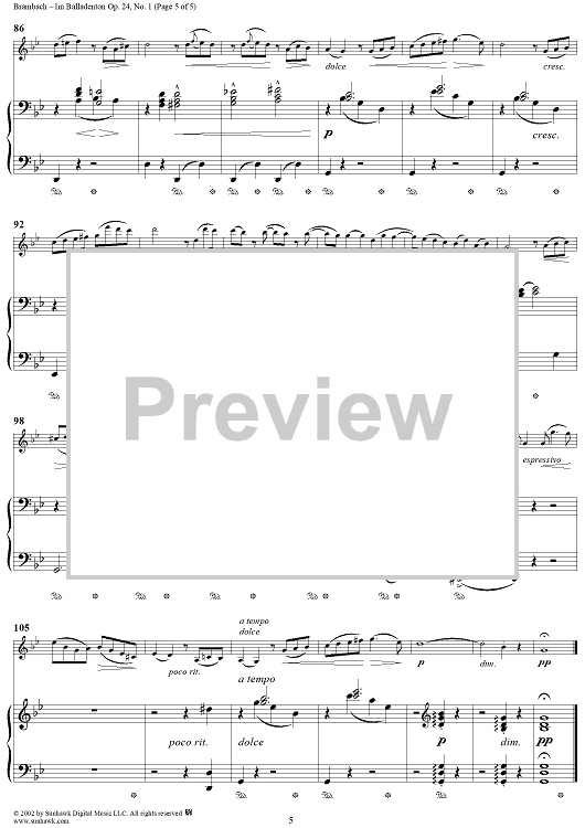 Digital Sheet Music for Im Balladenton - Piano Score by C. J. Brambach scored for Flute/Piano; id:276021