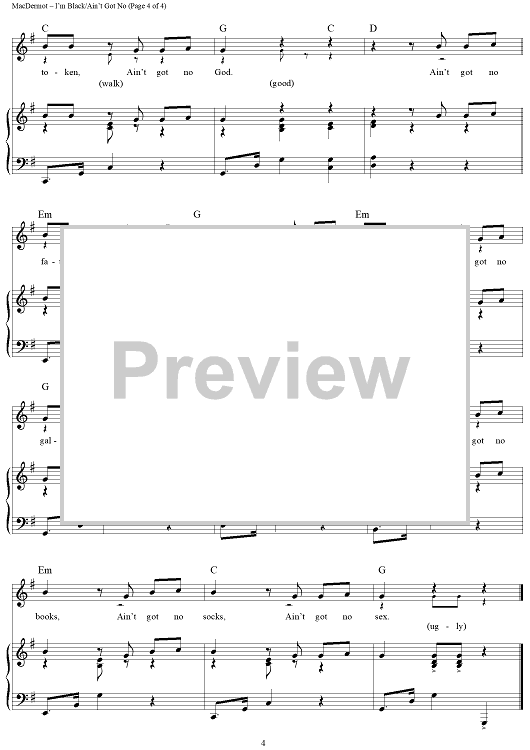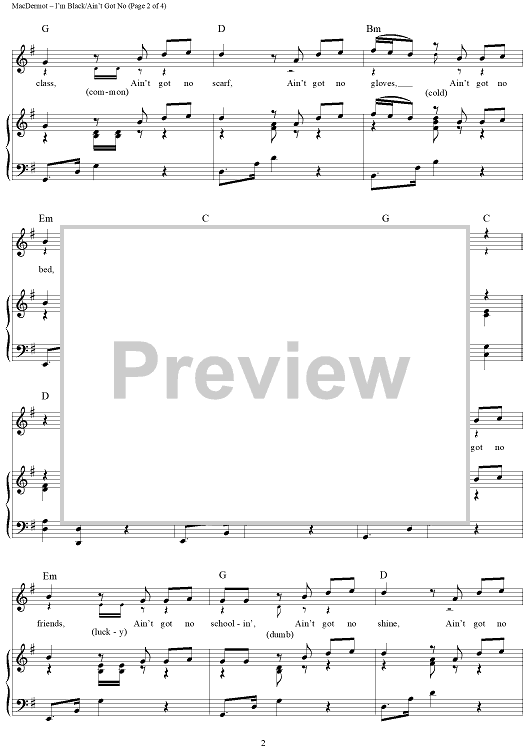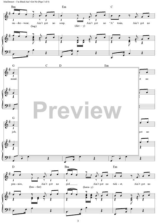 Digital Sheet Music for I'm Black/Ain't Got No by Galt MacDermot, James Rado, Gerome Ragni scored for Piano/Vocal/Chords; id:251792