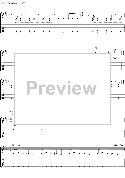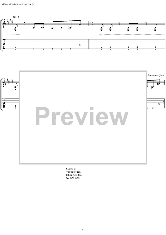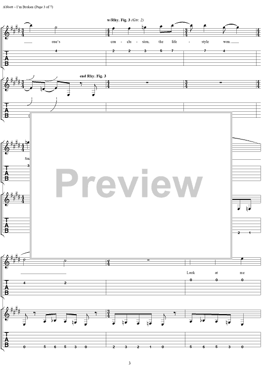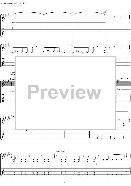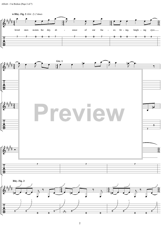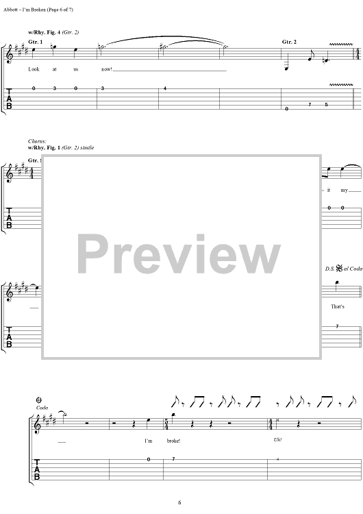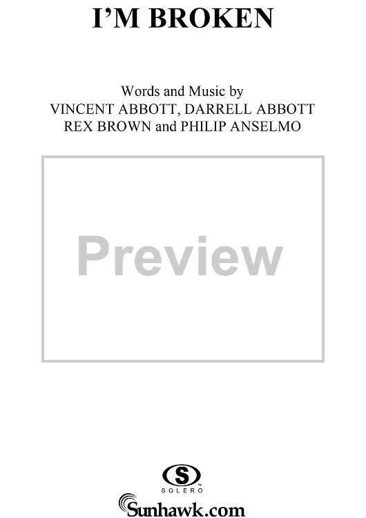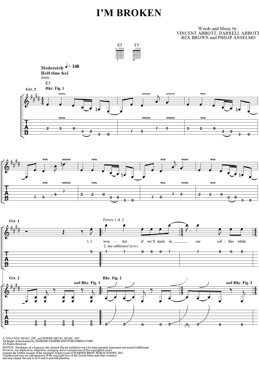 Digital Sheet Music for I'm Broken by Rex Brown, Louis Martinez, Dimebag Darrell, Phil Anselmo, Pantera, Vinnie Paul scored for Easy Guitar Tab/Vocal; id:277783
