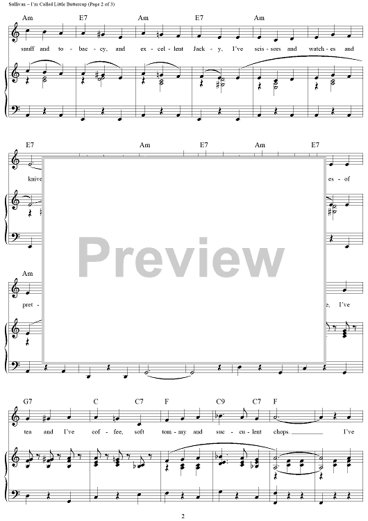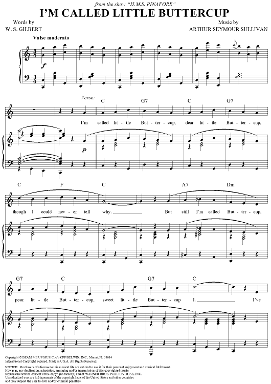 Digital Sheet Music for I'm Called Little Buttercup by W. S. Gilbert, Arthur Sullivan scored for Piano/Vocal/Chords; id:259428
