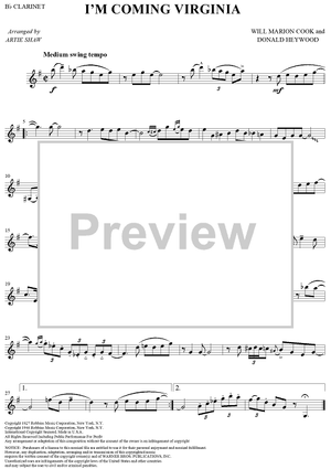 Digital Sheet Music for I'm Coming Virginia - Clarinet by , Artie Shaw, Will Marion Cook, Donald Heywood scored for Clarinet/Piano; id:355853