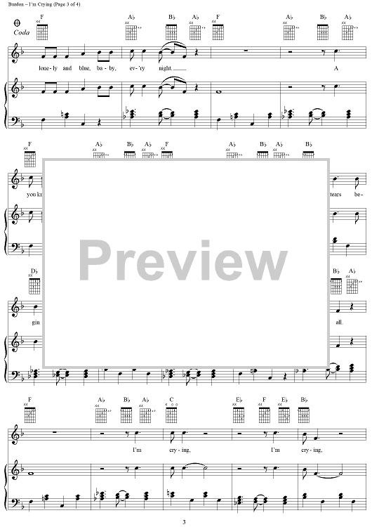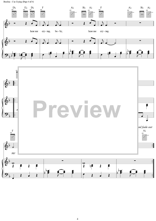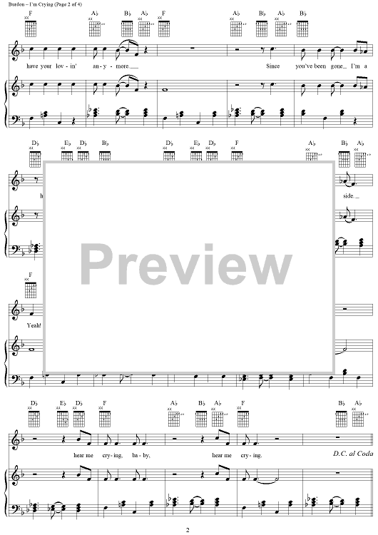 Digital Sheet Music for I'm Crying by Alan Price, The Animals, Eric Burdon scored for Piano/Vocal/Chords; id:189390