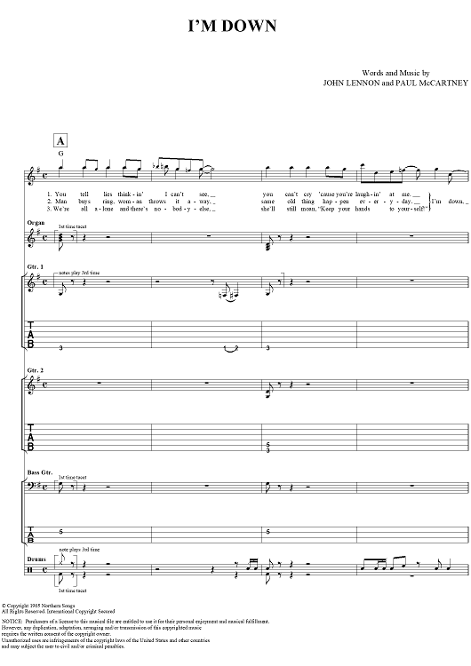"I'm Down" Sheet Music by The Beatles