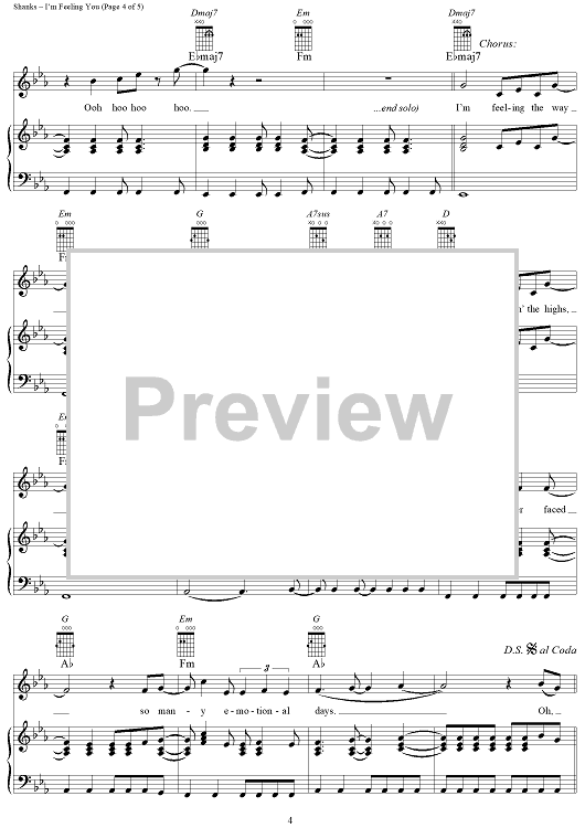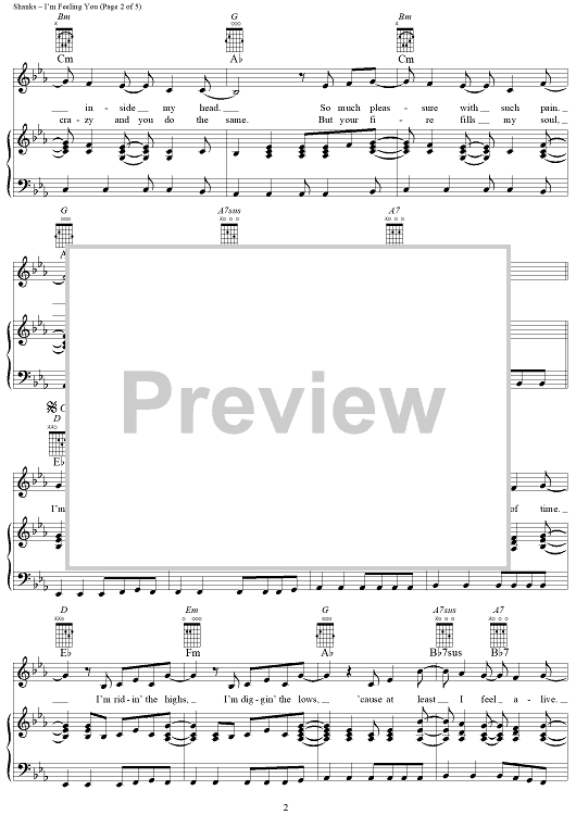 Digital Sheet Music for I'm Feeling You by John Shanks, Michelle Branch, Kara DioGuardi, Santana scored for Piano/Vocal/Chords; id:321596