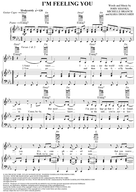 "I'm Feeling You" Sheet Music by Michelle Branch