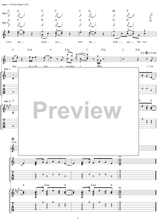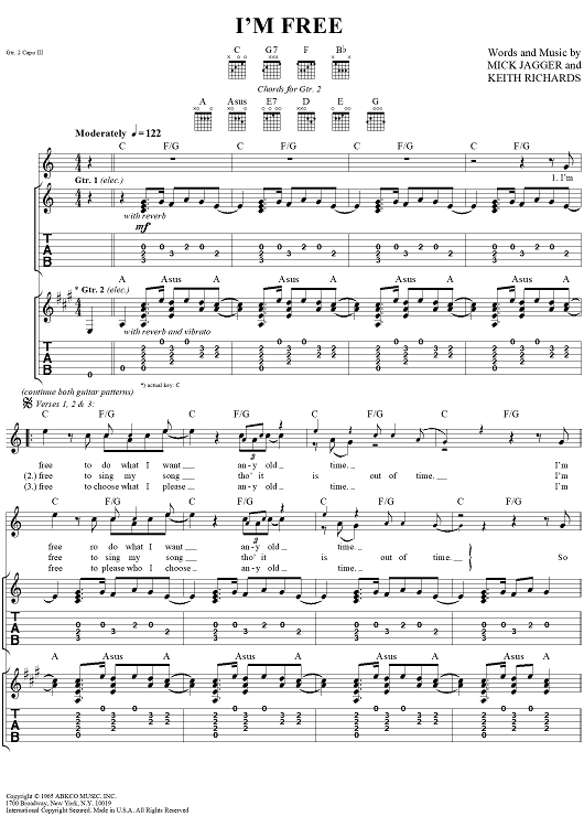 Digital Sheet Music for I'm Free by Keith Richards, The Rolling Stones, Mick Jagger scored for Guitar Tab/Vocal; id:316181